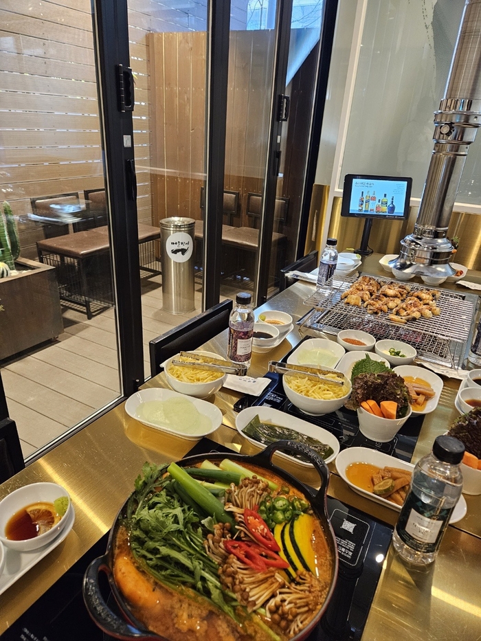 서울 강서구 마곡동에 위치한 머슬장어의 한상차림 메뉴. <부자비즈> 지난해에는 주방 뿐만 아니라 홀도 스마트화했다. 중소벤처기업부와 소상공인시장진흥공단이 추진하는 ‘스마트상점 기술보급 사업’을 통해 서빙 로봇과 테이블오더도 도입했다. 주방자동화와 홀의 스마트화 효과는 컸다. 매출액이 연 7억원대인데 김미화 사장 부부와 정직원 1명,아르바이트생들만으로 효과적으로 운영된다. 사정이 생겨 부부 두 사람만 매장에 근무한 적도 있는데 문제없이 영업을 했을 정도다.