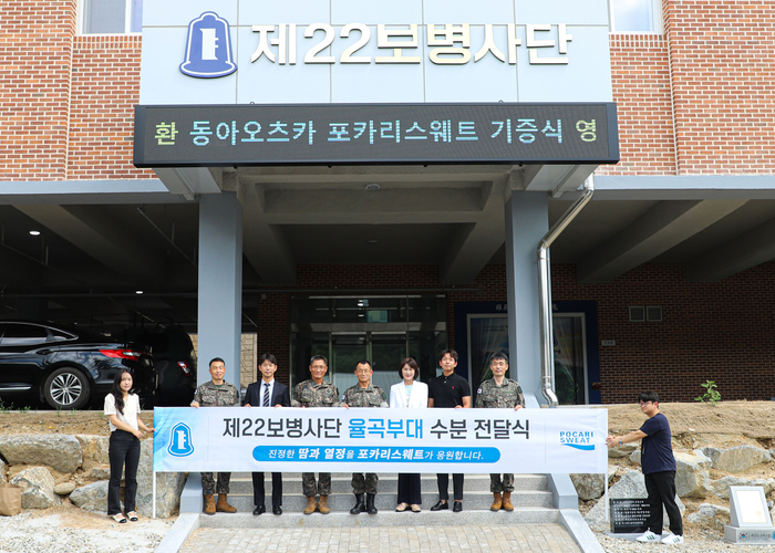 동아오츠카는 레바논 평화유지단 동명부대와 제22보병사단에 포카리스웨트 분말을 기부했다고 23일 밝혔다. 동아오츠카는 동명부대 소속 장병 약 300명에게 분말 900개,22사단 GOP 및 해양경계 약 4500여명에게 분말 4500개를 전달했으며 이는 무더위 속 장병들의 빠른 수분 보충을 돕기 위해 사용될 예정이다.