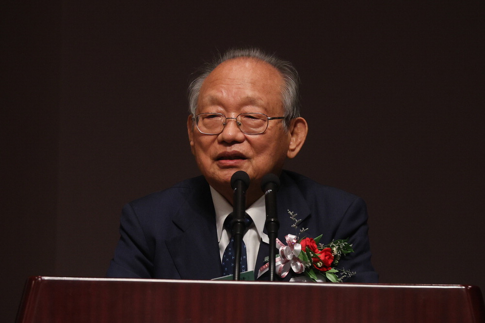 이명현 서울대 철학과 명예교수가 23일 서울 중구 한국프레스센터에서 열린 '철학과 현실,현실과 철학' 출판간담회에서 인사말을 하고 있다. 연합뉴스