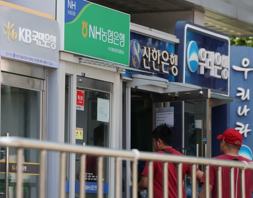 주요 은행들 현금인출기 부스. [사진 출처 = 연합뉴스] 금융당국의 가계대출 조이기 영향으로 은행권이 역대 최대 예대차익을 벌어들인 가운데 오히려 순이익은 역성장해 그 배경에 이목이 쏠린다.