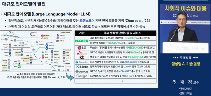 28일 국민생활과학자문단이 주최로 열린 국민생활과학기술포럼에서 권태경 연세대 정보대학원 교수는 최신 AI 기술 동향을 살폈다.