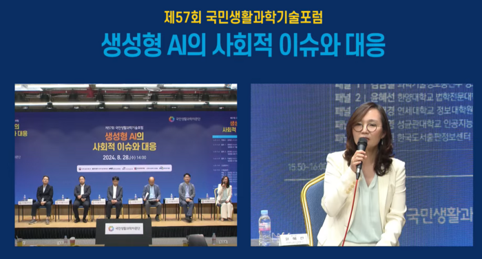윤혜선 한양대학교 법학전문대학원 교수는 생성형 AI와 같은 새로운 기술과 위험요소에 대한 제도적 대응이 시급하다고 주장했다.
