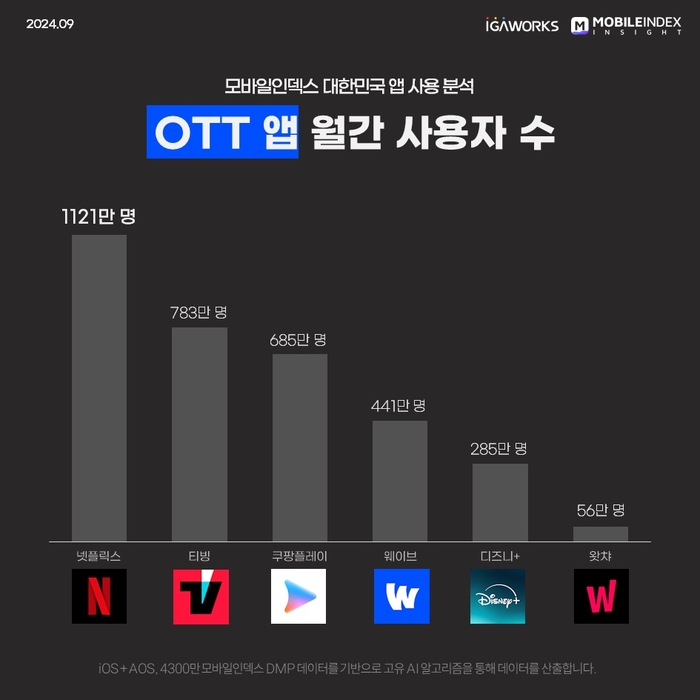 OTT 월간 사용자 수. 아이지에이웍스 모바일인덱스