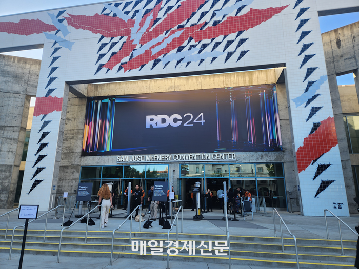 6일(현지시간) 로블록스개발자대회(RDC) 2024가 열리는 캘리포니아주 산호세의 산호세컨벤션센터의 입구. <사잔=이덕주 기자> 로블록스는 신규 사용자를 유입한 크리에이터에게도 보상을 제공한다. 파일럿 크리에이터 제휴 프로그램(Creator Affiliate Program)에 따라 신규유저를 데려온 크리에이터는 첫 6개월 동안 해당 사용자의 로벅스 구매에서 발생하는 수익의 일부를 받게된다.
