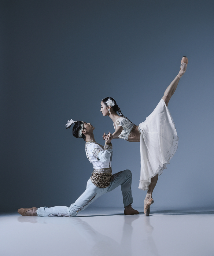 이달 29일 서울 유니버설아트센터 전막 발레 ‘라 바야데르’의 두 주역 전민철(솔로르 역·왼쪽)과 이유림(니키야 역). 사진제공=유니버설발레단