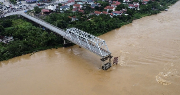 태풍 ‘야기’로 인해 무너진 베트남 홍강의 한 철교. <연합뉴스>