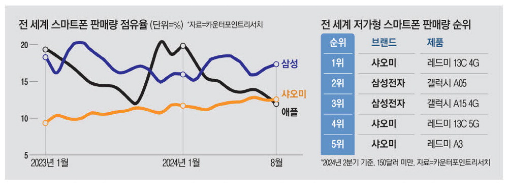 삼성전자와 애플이 인공지능(AI) 기능을 앞세운 플래그십 스마트폰을 선보이는 가운데,한편으로는 20만~30만원대의 저가형 스마트폰 시장도 꾸준히 성장하면서 샤오미가 수혜를 입은 것이다.