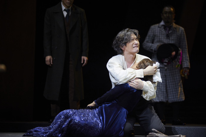 연극‘ 햄릿’의 한 장면. ⓒ예술의전당 연인 오필리아를 향한 햄릿의 광기도 강렬하다. 가혹한 운명을 맞아 사랑의 감정에 환멸을 느끼지만 오필리아를 진정으로 아끼는 햄릿의 양가적 마음이 거친 행동과 대사로 표현된다. 앞서 “별이 불타지 않는다 의심해도 태양이 움직이지 않는다 의심해도,내 사랑만큼은 의심하지 마오”라며 사랑을 속삭였었기에 수녀원에나 들어가라며 오필리아를 몰아세우는 햄릿의 모습이 더 슬프게 느껴진다.