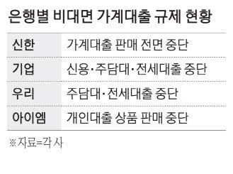 5대 시중은행 외에도 대출 조이기는 계속되는 분위기다. IBK기업은행 역시 지난달 29일부터 비대면 대출 상품 세 가지의 신규 판매를 중단한 상태다. 아이엠뱅크 역시 이달 1일부터 올해 말까지 두 달간 한시적으로 모바일 앱을 통한 일부 비대면 개인대출 상품 판매를 중단한다.