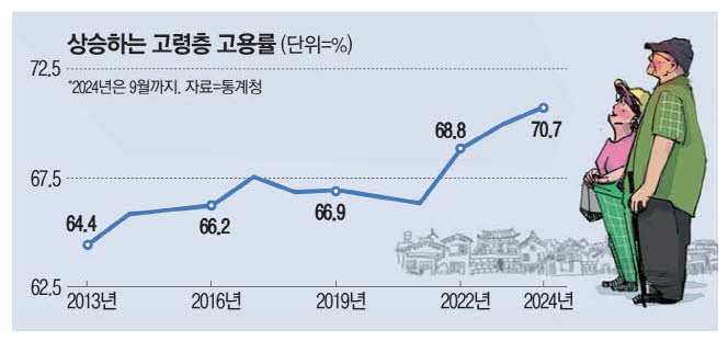 연구에 따르면 2013~2019년 55~65세 고령 근로자의 비중이 1%포인트 증가했을 때 전체 근로자의 임금은 0.63% 감소했다. 임금 감소 효과는 중장년층(36~54세)과 고령층에 집중됐다. 가장 많은 임금근로자가 집중된 중장년층 임금은 0.9% 줄어들었고,고령층이 받는 돈도 1% 감소했다. 16~34세 청년층 임금에 미치는 영향은 미미했다. 고령층 근로자가 늘어나면 비고령 근로자의 희소성이 높아져 이들의 임금이 높아질 것이란 일반적 예상과 달리 정반대의 분석이 나온 것이다. 양희승 교수는 "비용이 높은 고령층의 고용을 유지해야 하는 기업 입장에서는 신입을 덜 뽑기보다는 중년층의 조기 퇴직을 장려했을 것으로 보인다"고 말했다. 실제로 같은 기간 고령층 근로자가 1%포인트 증가했을 때 중장년 정규직 일자리는 0.9% 줄었다. 반면 같은 연령대 임시직(비정규직)은 1.3% 늘어났다.