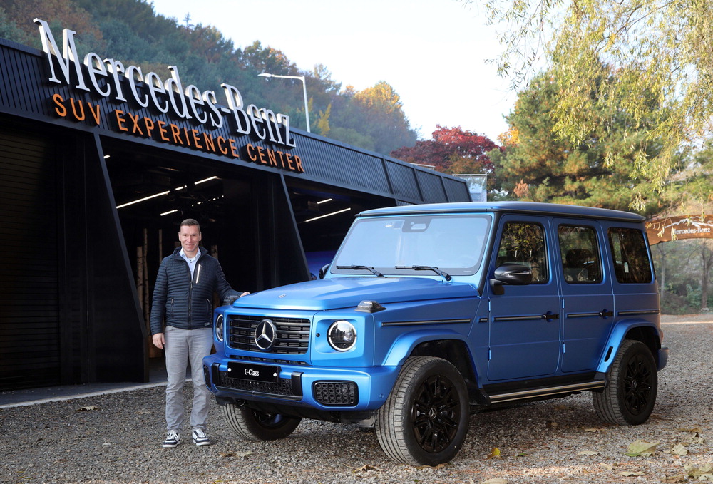 13일 벤츠코리아가 최초의 전기차 G바겐 시리즈 '메르세데스-벤츠 G 580 위드 EQ 테크놀로지'를 공개했다. 마티아스 바이틀 벤츠코리아 대표가 경기 용인시 스피드웨이에서 새롭게 출시된 차량을 소개하고 있다. 벤츠코리아
