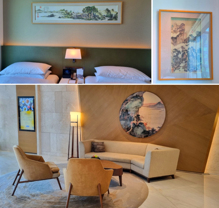 쉐라톤 홍콩 퉁청 내 지역 예술가의 작품 / 사진=김혜성 여행+ 기자 마치 그림 한 폭 같은 객실 전망을 감상하다가 눈을 돌리면 진짜 ‘그림 한 폭’을 발견할 수 있다. 객실마다 홍콩 지역 예술가가 그린 작품이 걸려 있으니 말이다. 작품은 로비 등 호텔 곳곳에 있어 예술 작품을 찾는 재미가 있다.