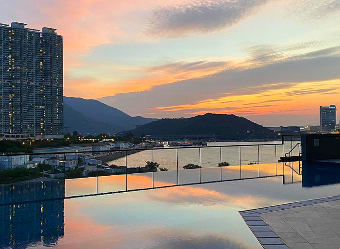 호텔 3층 야외수영장 / 사진=쉐라톤 호텔 퉁청 수영장에 몸을 담근 채 저 멀리 수평선 아래로 붉은 해가 떨어지는 풍광. 이 호텔 투숙객이라면 누구나 이 절경을 감상할 수 있다. 호텔 3층에 있는 기다란 야외 수영장에 몸을 담그면 난간 너머로 바다가 펼쳐진다. 젖은 몸을 말릴 수 있는 선베드는 무료로 이용할 수 있다. 야외 수영장과 같은 층에 있는 운동시설은 24시간 열려 있어 수영 전후로 들르기 좋다.