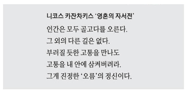 그런데 니코스 카잔차키스의 책 '영혼의 자서전'은 좀 다르다. 한 권의 자서전 전체가 심금을 울리는 명문장으로 그득하기 때문이다.