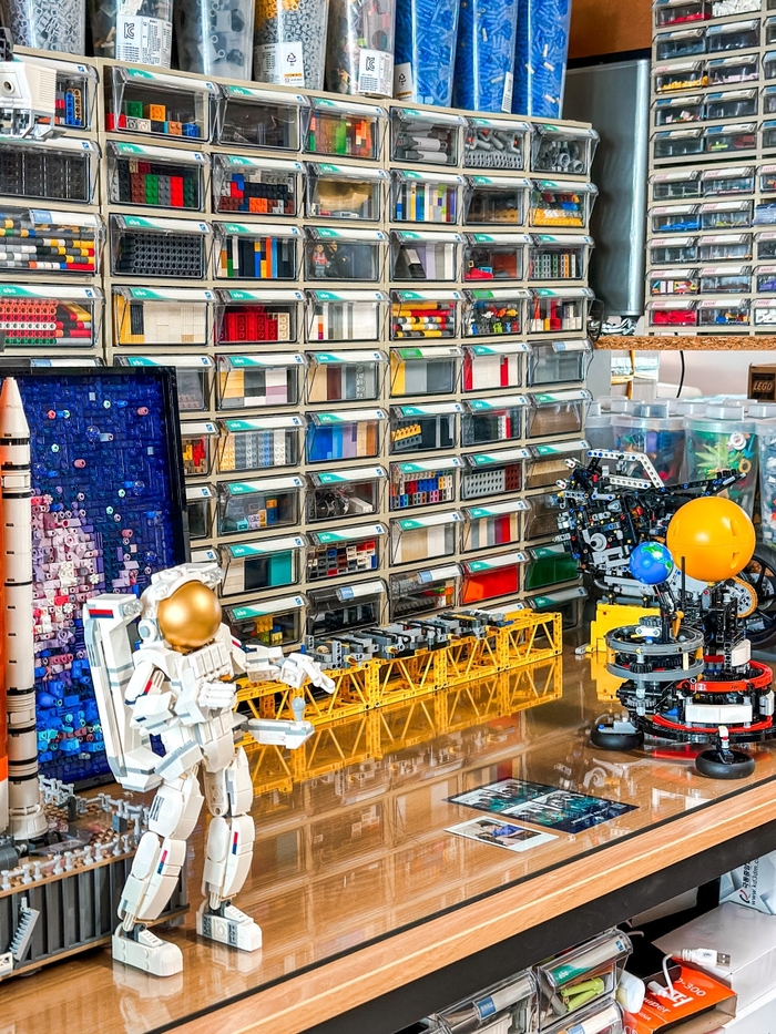 신권수 작가 아이들의 작품 / 사진=권효정 여행+ 기자 사람들은 종종 “작업실이 집에 있고 당시 아이들이 어렸으니,레고 조기 교육 최적지 아니냐”고 말한다. 하지만 환경보다는 철학이 더 중요하다. 도구는 많지만,자기 생각을 잘 배합해 표현하는 능력은 또 다른 문제다. 아이디어를 브릭으로 구현하는 과정,창의적 사고 흐름을 읽어내는 게 핵심이다.