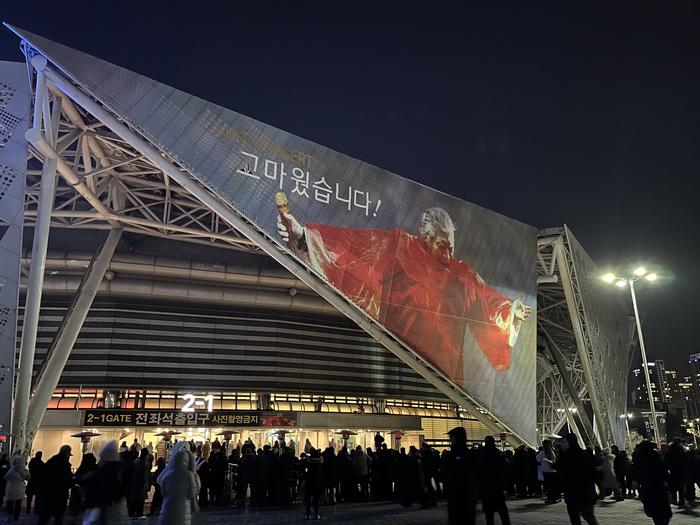 나훈아의 마지막 콘서트 ‘고마웠습니다’가 열린 10일 서울 올림픽공원 KSPO돔 공연장에관객들이 입장하고 있다. 사진=정주원 기자 ‘가황’ 나훈아(78)가 58년 가수 인생을 정리하는 마지막 무대에서 정치권에 작심 발언을 쏟아냈다. 지난달 대구 공연 중 계엄 사태를 비판한 것으로 알려진 후 이번 서울 공연에선 “니들은 잘 했나” “진짜 국민 위한 게 맞냐”고 야권,더 나아가 정치권 전체를 겨냥했다.