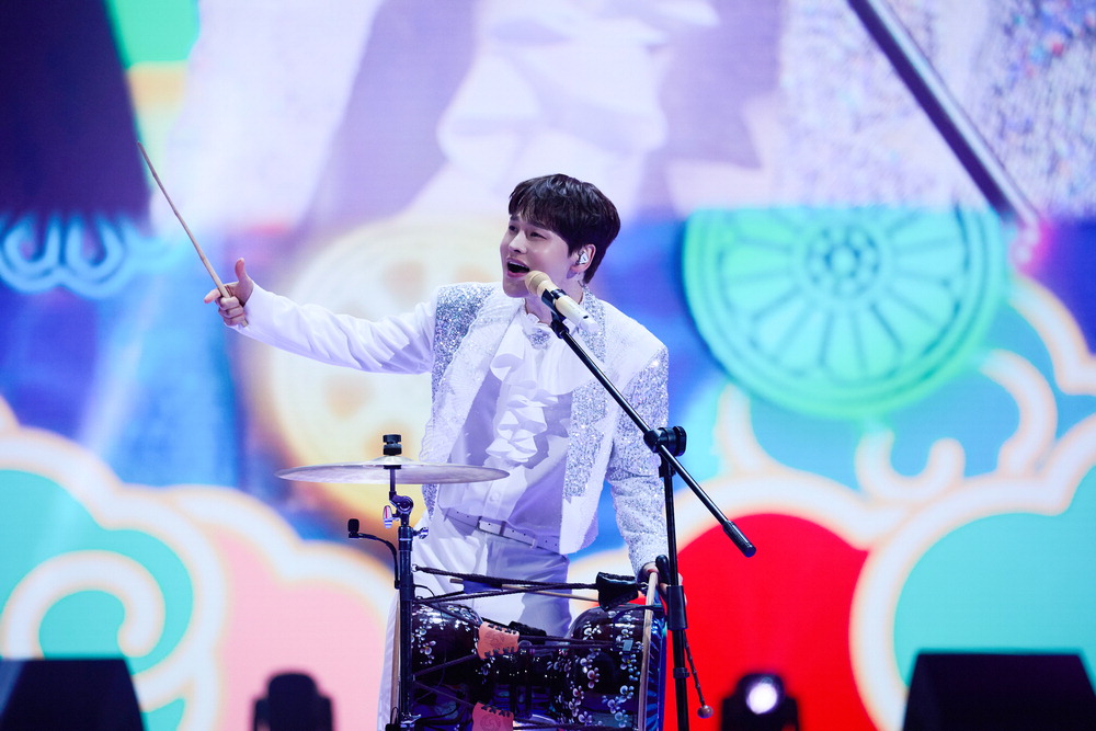 '현역가왕2 전국 투어 콘서트'에서 박서진이 장구를 치고 있다. 크레아 스튜디오