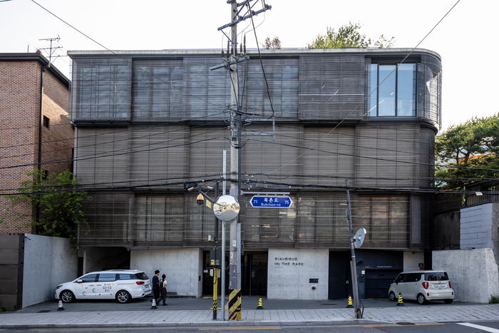 어둠속의 대화 외관 / 사진=서울관광재단 ‘어둠속의 대화’는 완전한 어둠 속에서 시각을 차단하고 다른 감각을 활용해 체험하는 전시 및 프로그램이다. 어둠이라는 극단적인 상황 속에서 시각을 차단한 채 주변의 소리에 귀를 기울이는 전시다.