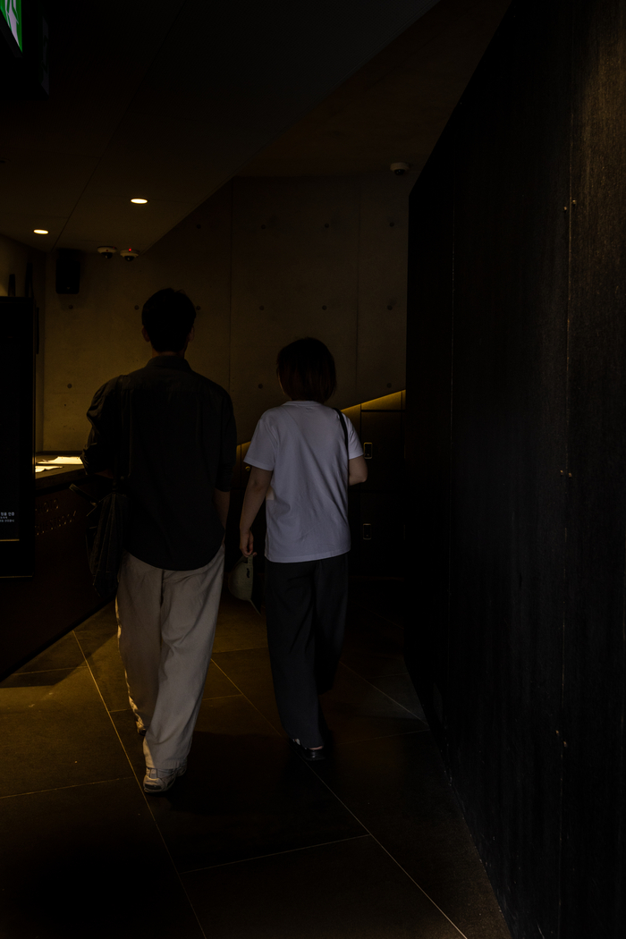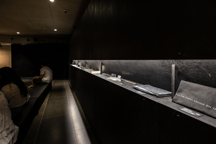 어둠 속의 대화 입구 / 사진=서울관광재단 실제 전시장에 입장하면 어떤 전자기기도 소지할 수 없다. 오로지 시각장애인 로드 마스터(안내자)의 인도에 따라 시각을 제외한 모든 감각을 이용해 전시장 내부를 직접 체험하는 시간을 가진다.
