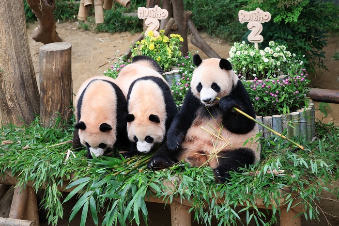 두돌을 맞은 에버랜드 쌍둥이 판다 루이바오 후이바오와 엄마 아이바오 / 사진=삼성물산 에버랜드 동물원에서는 루이바오·후이바오 등 판다 가족의 생일이 모두 모여있는 7월을 맞아 ‘해피 바오스 데이’ 생일 주간을 운영 중이다. 타이거밸리에서는 낱말 퀴즈,스탬프 모으기 등으로 호랑이에 관해 알리는 호랑이 종 보전 행사를 8월 3일까지 진행한다.