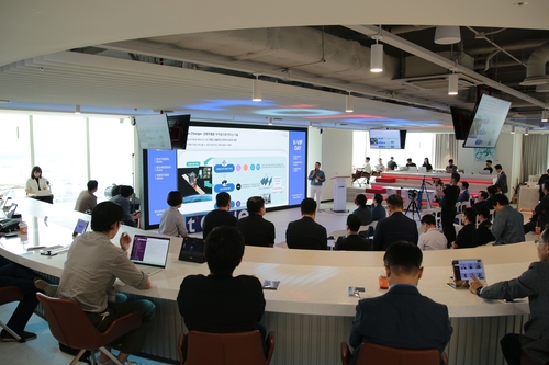 15일 티오더 본사에서 개최 된 K-VIP DAY에서 민경령 스페이스앤빈 대표가 IR 발표를 하고 있다. <벤처기업협회>
