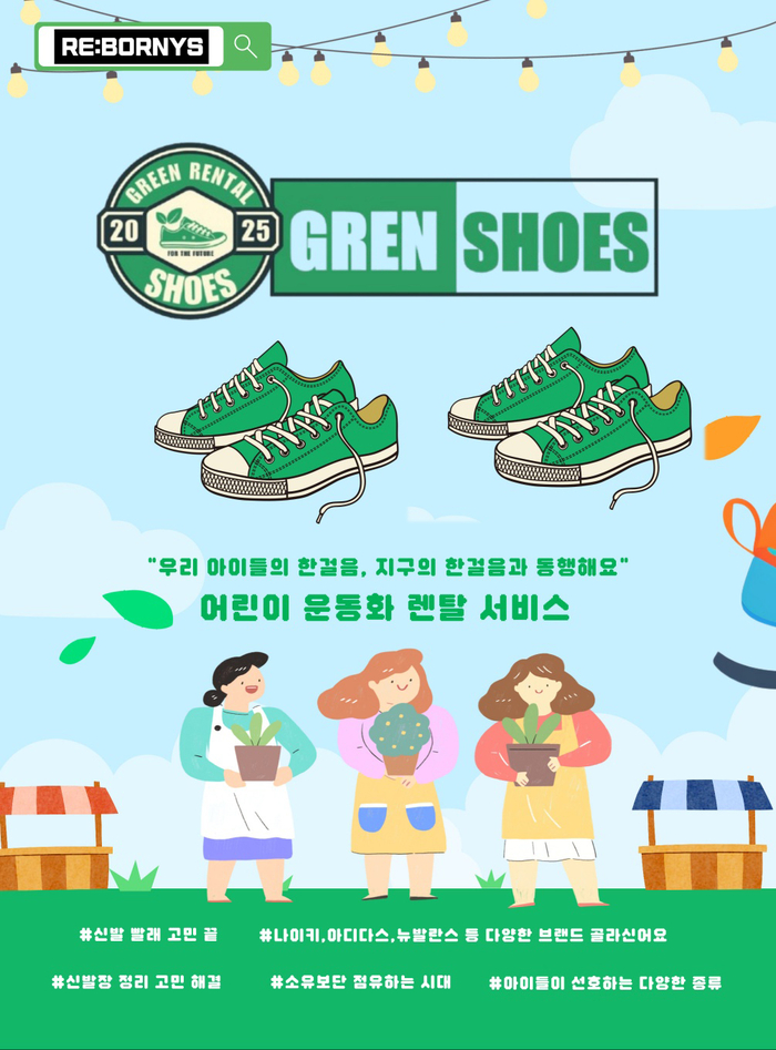 단순히 이벤트로 끝나는 소모성 사회공헌사업이 아닌 그렌슈즈는 단순 렌탈 서비스가 아니라,‘신고,반납하고,다시 태어나는’ 지속 가능한 소비 시스템으로 자리 잡고자 한다. GRENSHOES는 아이들의 한 걸음 한 걸음을 기록하고,응원하며,성장의 발자취를 남기는 서비스 브랜드다. 운동화 렌탈에 대하여 생소하지만,보다 다양한 서비스,선택가능한 브랜드 제품,세탁 및 배송서비스를 통해 소유의 신발이 아닌 사용의 신발의 서비스로 거듭 날 예정이다.