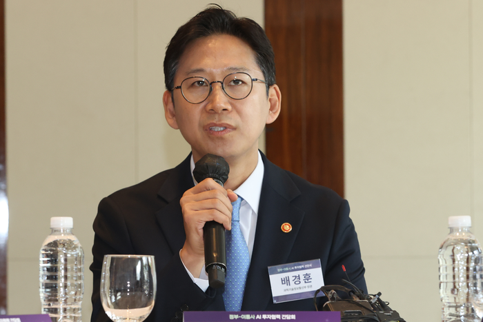 배경훈 과학기술정보통신부 장관. 행사에 앞서 배 장관과 3사 대표들은 비공개 환담을 통해 AI 분야 투자계획을 구체적으로 공유하고,민관이 함께 할 수 있는 협력 방안을 논의했다. 본행사에서는 정부,출자사,운영기관 대표들이 나란히 무대에 올라 AI 투자 확대를 공식 선언했다. 배 장관은 “AI가 모든 혁신의 근원이 되는 가운데 투자 확대를 통해 혁신을 이끌 AI 기업들에게 성장 마중물을 제공할 것”이라며 “이번 KIF 자펀드 결성이 AI 투자에 활기를 불어넣기를 기대하며 정부도 AI 3대 강국 도약을 위해 민간과의 투자·협력 기반을 든든히 다져나가겠다”고 강조했다.