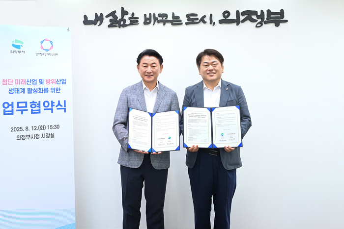 이번 협약은 내년 3월 개소 예정인 ‘경기 AI혁신클러스터’를 거점으로 의정부시 내 첨단 미래산업 분야 스타트업을 발굴·육성하고,방위산업 및 투자 생태계 조성을 통해 지속 가능한 지역 산업 성장을 견인하기 위해 마련됐다. 특히 시의 경기국방벤처센터 공모 참여 관련 방위산업 성장 생태계 구축에 양 기관이 상호 협력체계를 강화하기로 했다.