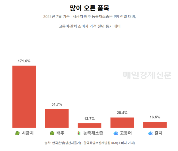“집밥 먹기도 겁난다”…고등어·배춧값 등 폭등에 밥상 물가 ‘들썩’
