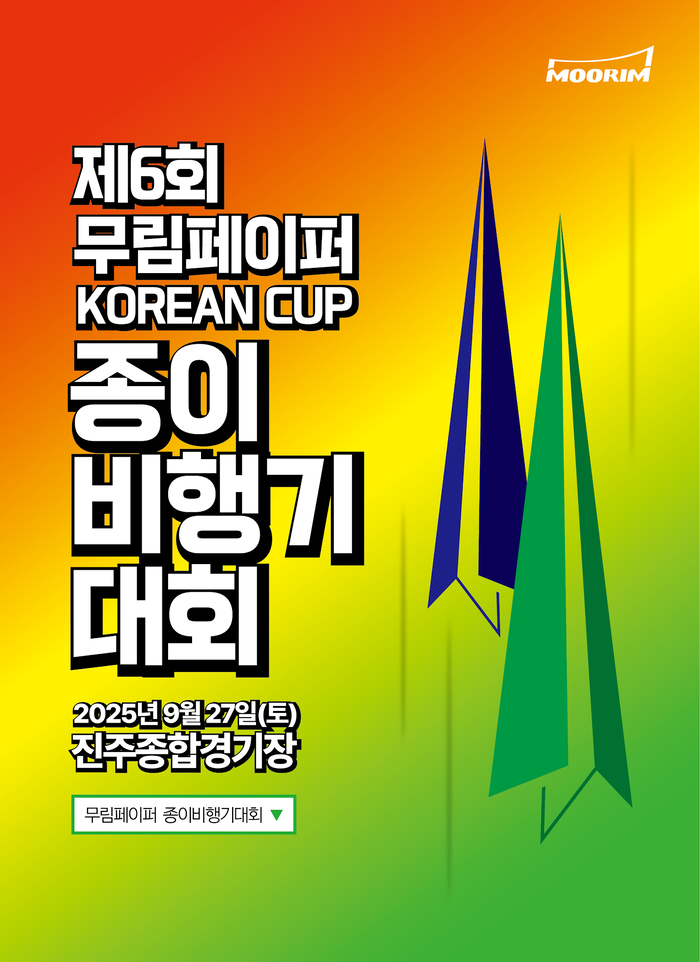무림페이퍼는 ‘2025 제6회 무림페이퍼 코리안컵 종이비행기대회’를 오는 27일 진주종합경기장 주경기장에서 개최한다고 11일 밝혔다.