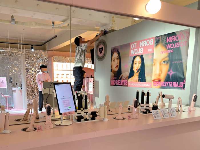 보다나는 19일부터 21일까지 3일간 가수가 무대에 오르기 전까지의 과정을 경험할 수 있는 ‘본 투 블로우(Born to Blow)’ 콘셉트의 팝업 스토어를 진행한다. [김혜진 기자] “블랙핑크 제니가 되어 볼 수 있는 공간이에요. 마지막에 화려하게 데뷔하시면 됩니다.”19일 국내 대표 헤어 스타일링 브랜드 보다나가 서울 성수동에 연 팝업스토어 매장에 들어서자 대기 중인 직원이 이같이 말했다.보다나는 오는 21일까지 3일간 가수가 무대에 오르기 전까지의 과정을 경험할 수 있는 ‘본 투 블로우(Born to Blow)’ 콘셉트의 팝업 매장을 운영한다.팝업이 열리고 있는 건물은 멀리서부터 분홍빛 스팽글 장식 입구가 눈길을 사로 잡았다. 내부는 보다나 시그니처 컬러인 분홍색 인테리어가 특징이다.블랙핑크 제니 등 K팝 아이돌의 하루를 모티브로 구성된 이번 팝업은 방문객이 직접 녹음실,백스테이지,데뷔 무대 등을 거친다. 특히 무대에 오르기 전 스타일링 공간인 백스테이지에서는 보다나의 다양한 제품을 체험할 수 있다.먼저 방문객은 나만의 ID 카드를 제작해야 한다. 키오스크에서 사진을 촬영한 뒤,자신의 모습을 닮은 인공지능(AI) 캐릭터를 생성해 실물 ID 카드에 담을 수 있다. 동선을 따라 녹음실로 이동하면 이달 출시된 보다나의 신제품 ‘글래어 스타일러 폴드’의 기능을 경험해 볼 수 있는 공간이 마련되어 있다.보다나는 19일부터 21일까지 3일간 가수가 무대에 오르기 전까지의 과정을 경험할 수 있는 ‘본 투 블로우(Born to Blow)’ 콘셉트의 팝업 스토어를 진행한다. [김혜진 기자] 글래어 스타일러 폴드는 포터블 모드,드라이어 모드,스타일러 모드 등 세 가지 형태로 전환 가능한 제품으로 네 가지 노즐을 활용해 볼륨,스트레이트,웨이브 등 다양한 스타일링을 연출할 수 있는 올인원 헤어 스타일러다.백스테이지 공간에서는 ‘글래어 스타일러 폴드’뿐만 아니라 ‘글로우 물결 고데기’,‘이지 업 헤어스타일러’ 등 보다나의 베스트셀러 제품이 준비돼 있다. 마지막으로 메인 스테이지에는 완성한 스타일링을 뽐낼 수 있다. 무대 위 스탠딩 마이크를 활용해 실제 K팝 아이돌이 된 듯한 체험을 즐길 수 있다.보다나는 19일부터 21일까지 3일간 가수가 무대에 오르기 전까지의 과정을 경험할 수 있는 ‘본 투 블로우(Born to Blow)’ 콘셉트의 팝업 스토어를 진행한다. [김혜진 기자] 이번 행사는 보다나의 첫 단독 팝업 스토어다. 보다나 관계자는 “올해 리브랜딩을 진행하면서 하반기에 새로운 제품들을 선보였다”며 “보다나가 달라졌다는 메시지를 전달하고 싶어서 기획하게 됐다”고 설명했다. 2012년 설립된 보다나는 하재금 대표가 지난해 10월 취임한 이후 디자인 역량 강화,제품 개발 고도화를 노력해 왔다.보다나는 글로벌 시장 공략에 속도를 내고 있다. 중국에 지사를 설립한 이후 이커머스를 중심으로 인기를 끌었고,현재 전체 매출 비중의 30%가 중국으로 집계됐다. 보다나 관계자는 “이제 진출을 시작한 일본과 동남아시아 지역에도 제품이 판매가 되고 있다”며 “미국은 아마존에서 먼저 판매한 뒤 오프라인 대형 유통망으로 확대할 계획”이라고 설명했다.보다나는 19일부터 21일까지 3일간 가수가 무대에 오르기 전까지의 과정을 경험할 수 있는 ‘본 투 블로우(Born to Blow)’ 콘셉트의 팝업 스토어를 진행한다. [김혜진 기자] 성수동을 첫 단독 팝업 스토어 장소로 선택한 이유와도 관계가 있다. 성수는 K뷰티와 K컬쳐를 체험하려는 외국인 관광객과 트렌드에 민감한 소비자들이 가장 많이 찾는 곳이다.서울교통공사에 따르면 성수역의 일평균 승하차 인원은 2018년 5만6000여명에서 지난해 8만8059명으로 57% 급증했다. 내국인 방문객은 2018년 대비 31% 늘어 2600만명을 넘어섰고,외국인 관광객은 같은 기간 6만명에서 300만명대로 대폭 늘어났다.남성 및 시니어 고객을 겨냥한 제품군도 강화 중이다. 이 관계자는 “올해 초 충전식 다운펌 기기를 출시했고,이번 글래어 스타일러 폴드 역시 남녀노소 모두 쓸 수 있도록 기획했다”며 “앞으로도 다양한 소비자층을 고려한 제품을 꾸준히 선보일 것”이라고 말했다.