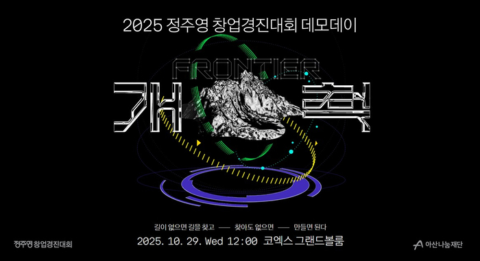 아산나눔재단이 민간 최대 규모의 창업경진대회인 ‘2025 정주영 창업경진대회(이하 ‘정창경’)’ 데모데이를 오는 10월 29일 서울 코엑스에서 개최한다. [아산나눔재단] 아산나눔재단이 민간 최대 규모의 창업경진대회인 ‘2025 정주영 창업경진대회(이하 ‘정창경’)’ 데모데이를 오는 10월 29일 서울 코엑스에서 개최하며,참관객 사전등록을 시작한다고 22일 밝혔다.