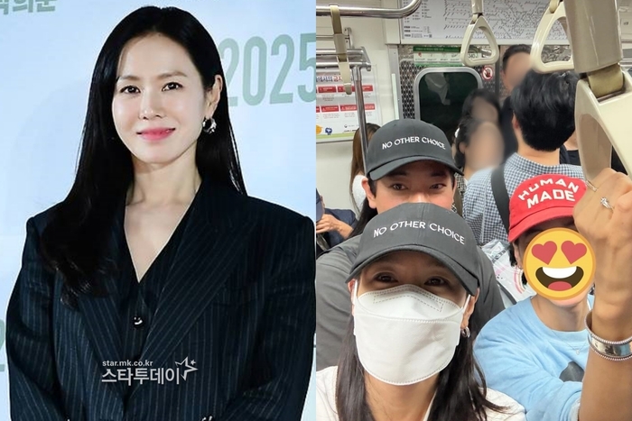 공개된 사진에는 손예진이 영화 ‘어쩔수가없다’의 영어 타이틀 문구를 적은 모자와 마스크를 착용한 채 지하철로 퇴근하는 모습이 담겼다.