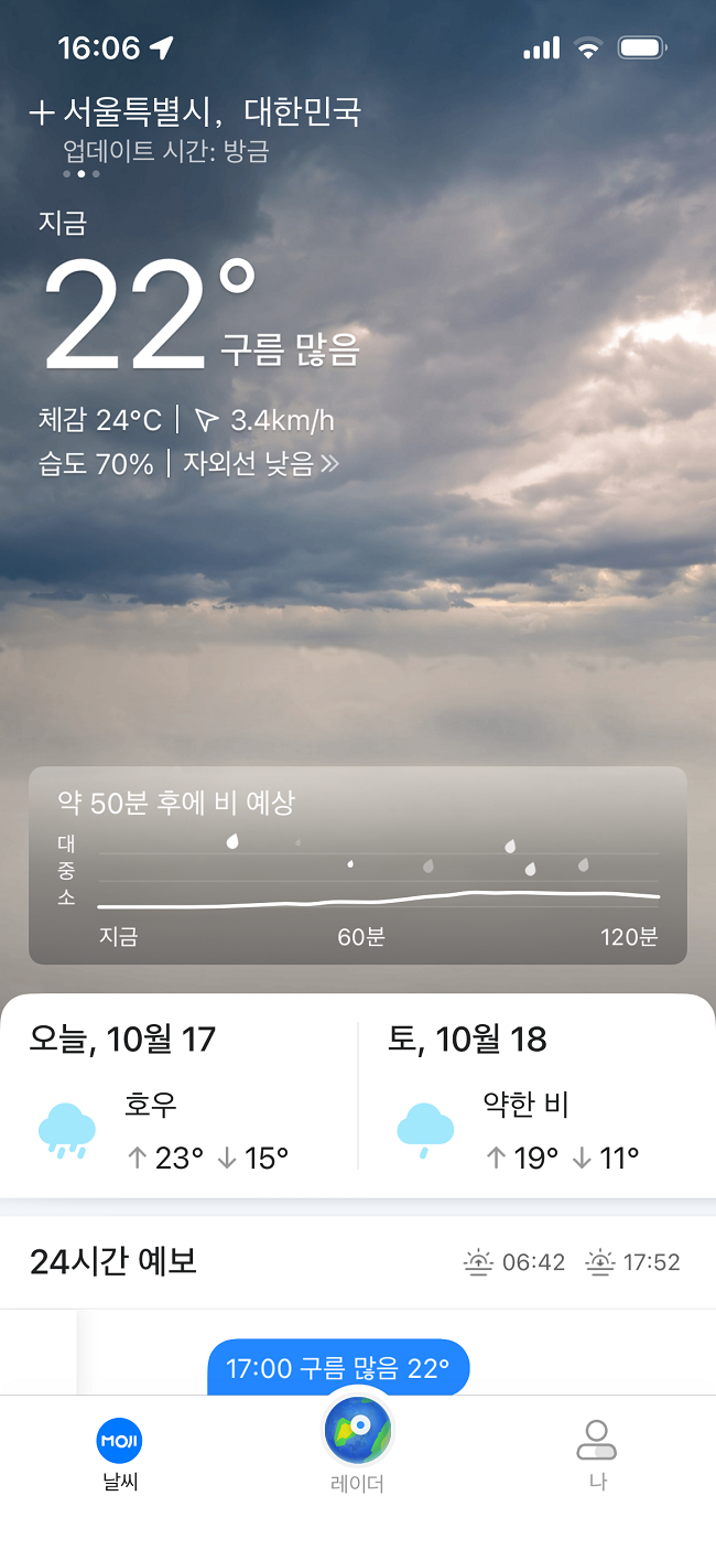 MojiWeather 한국의 2개 플랫폼에 출시, 현지 상황에 맞춘 정밀 기상 서비스 제공