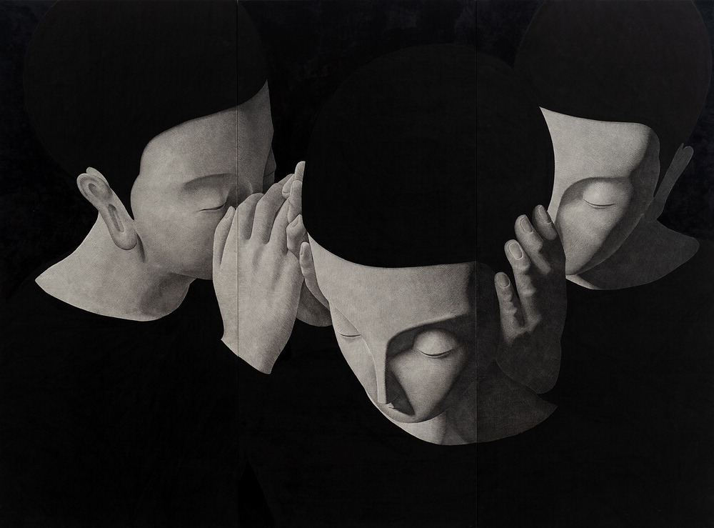작품 속 인물들은 모두 비슷한 얼굴을 하고 있다. 특정한 인물을 묘사하기보다는 감정의 구조를 드러내기 위한 선택으로 보인다. 이날 전시장에서 만난 작가는 색채 대신 먹을 사용하는 이유에 대해 "동양 미학에서 검은색만으로 모든 만물을 표현할 수 있다고 하는데 이에 동의한다"고 설명했다.