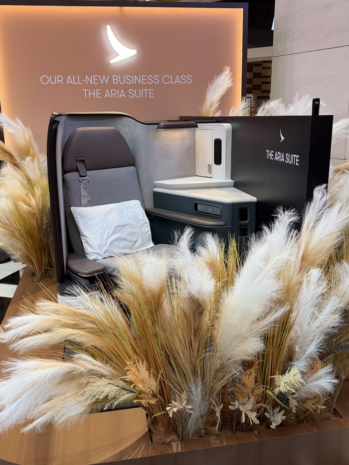 아리아 스위트 체험 존. /사진= 강예신 여행+ 기자 아리아 스위트는 프라이버시를 극대화한 독립적 구조와 예술적인 디자인으로 한층 몰입감 있는 휴식을 선사하며,프리미엄 일반석 역시 넓은 공간으로 장거리 여행의 편안함을 강조한다.